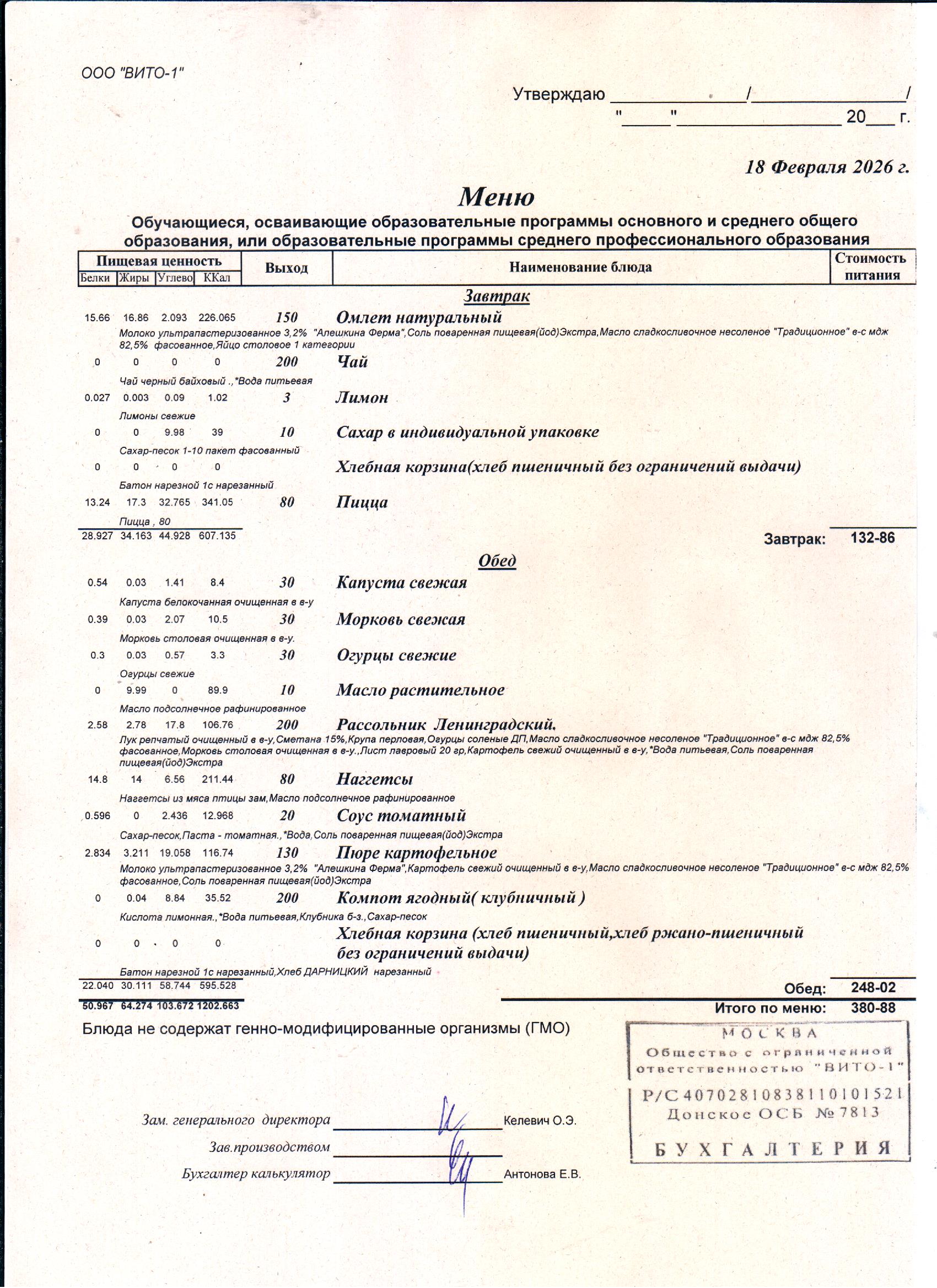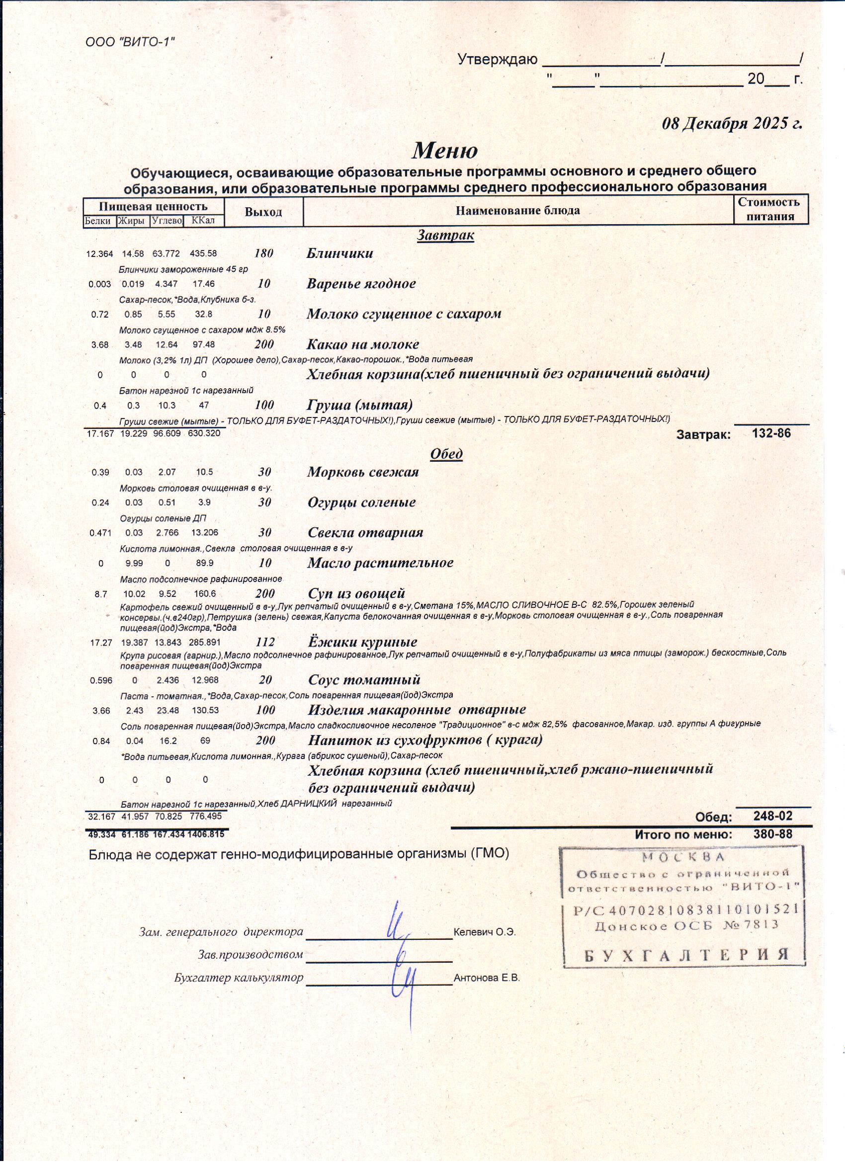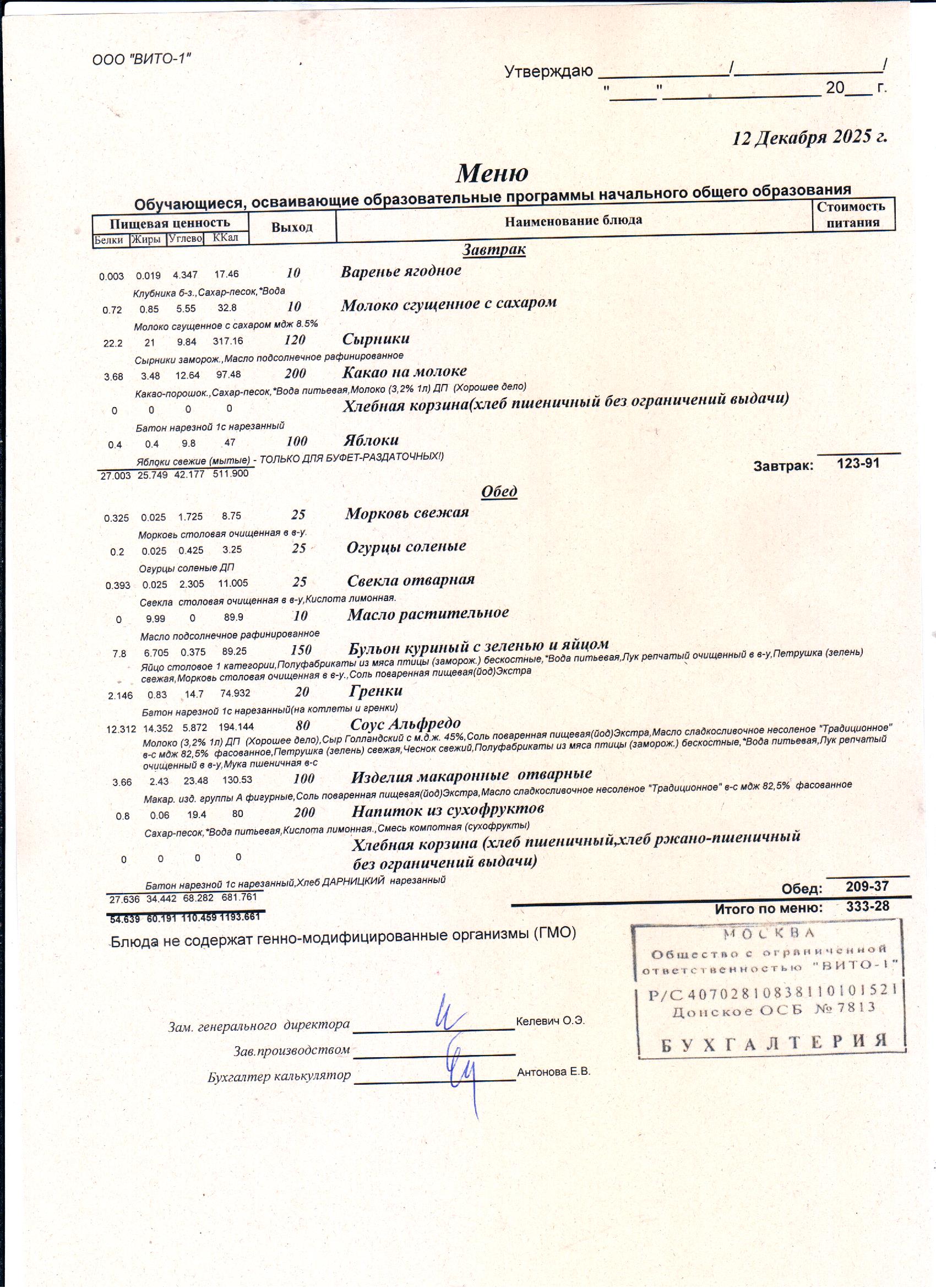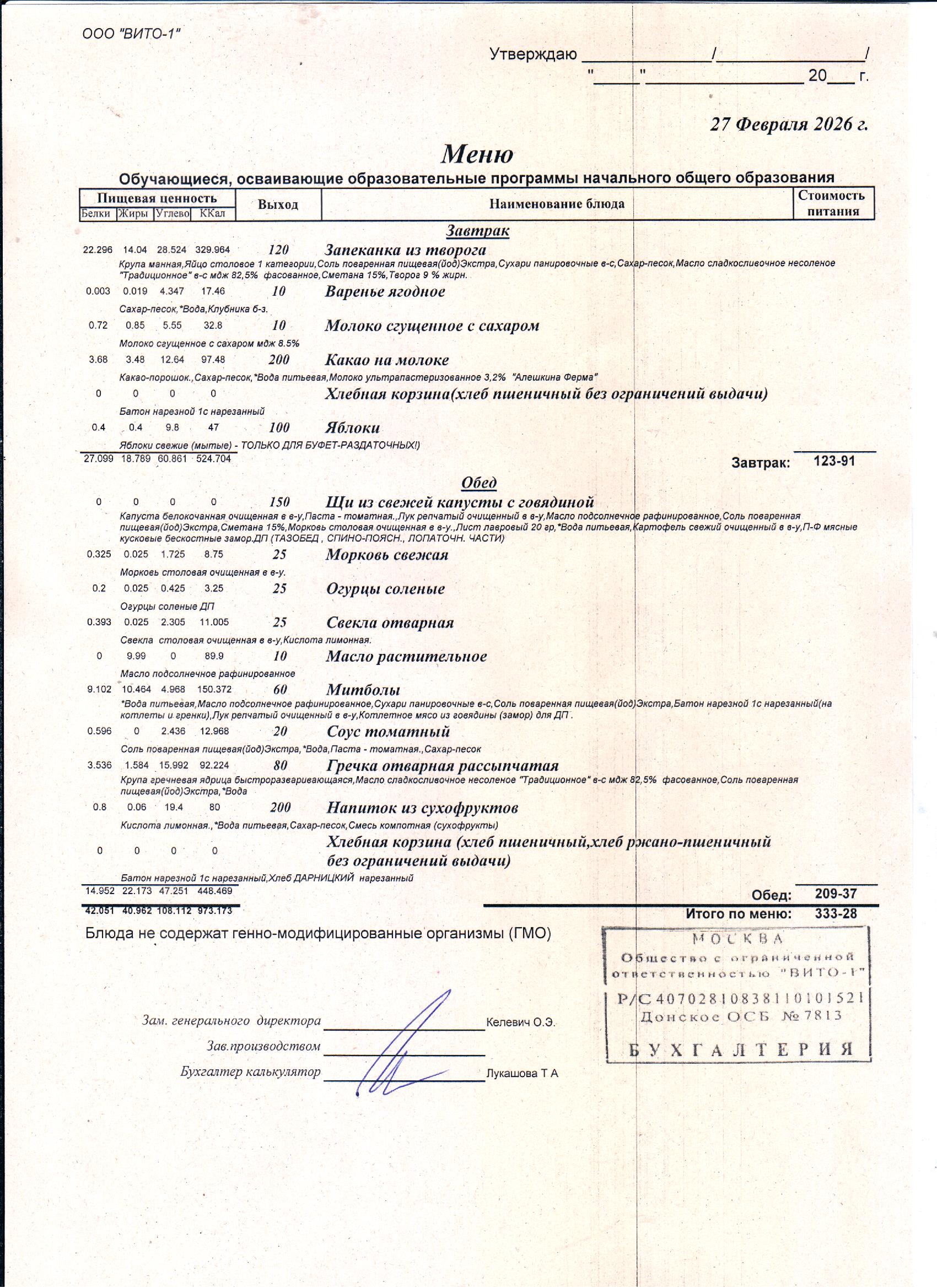 ЕЖЕДНЕВНОЕ МЕНЮ СТОЛОВОЙ