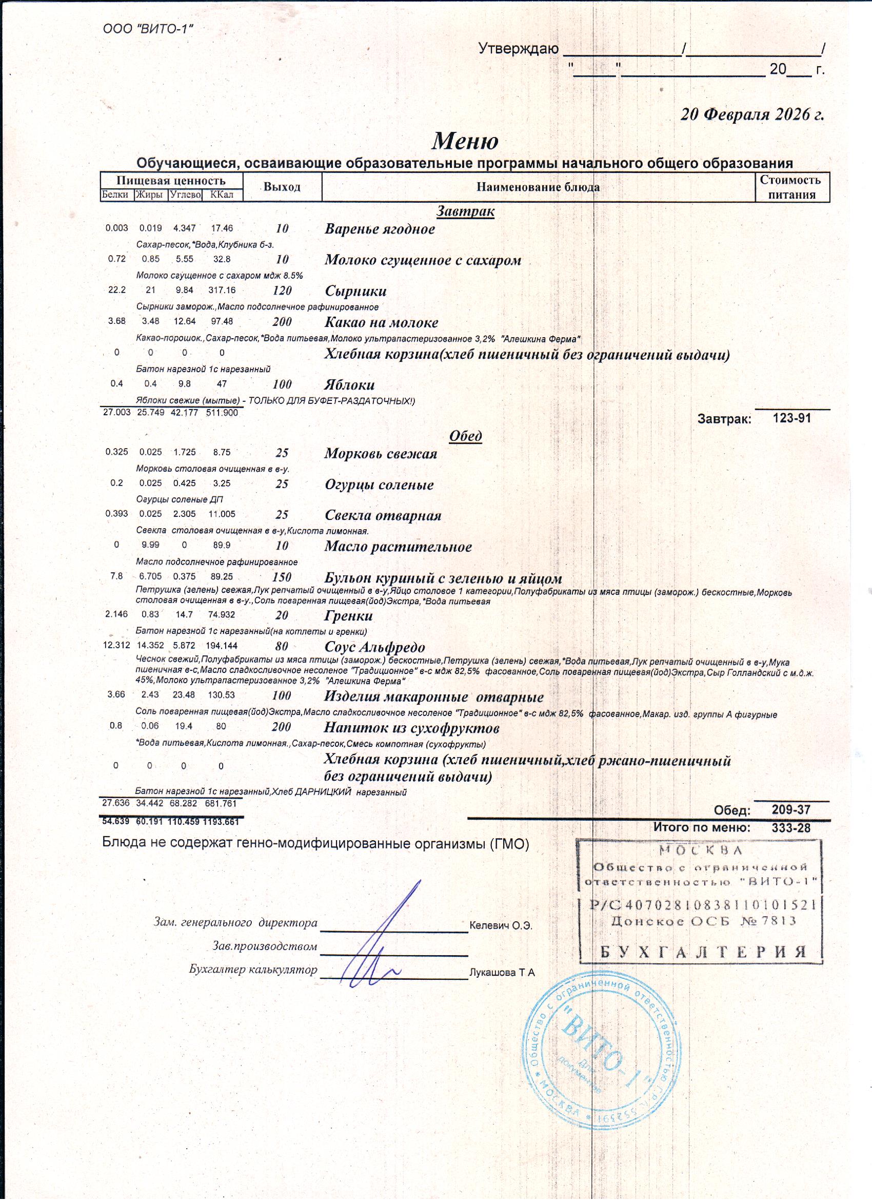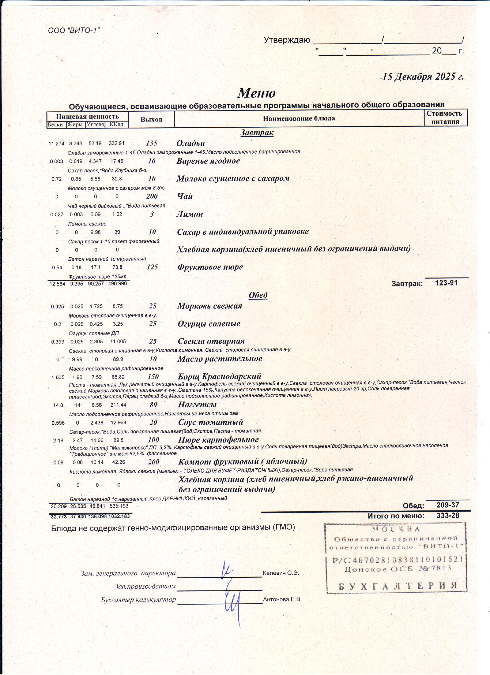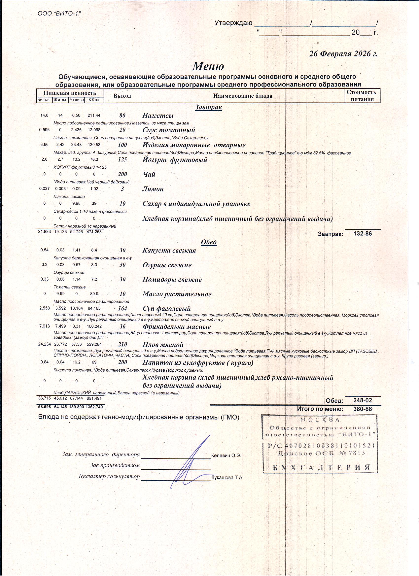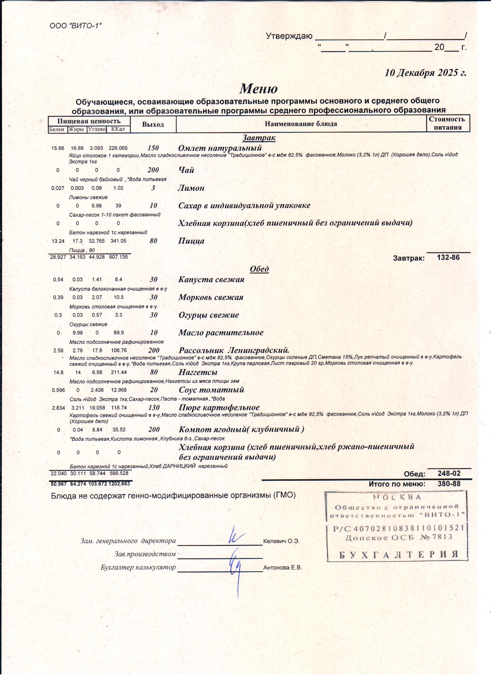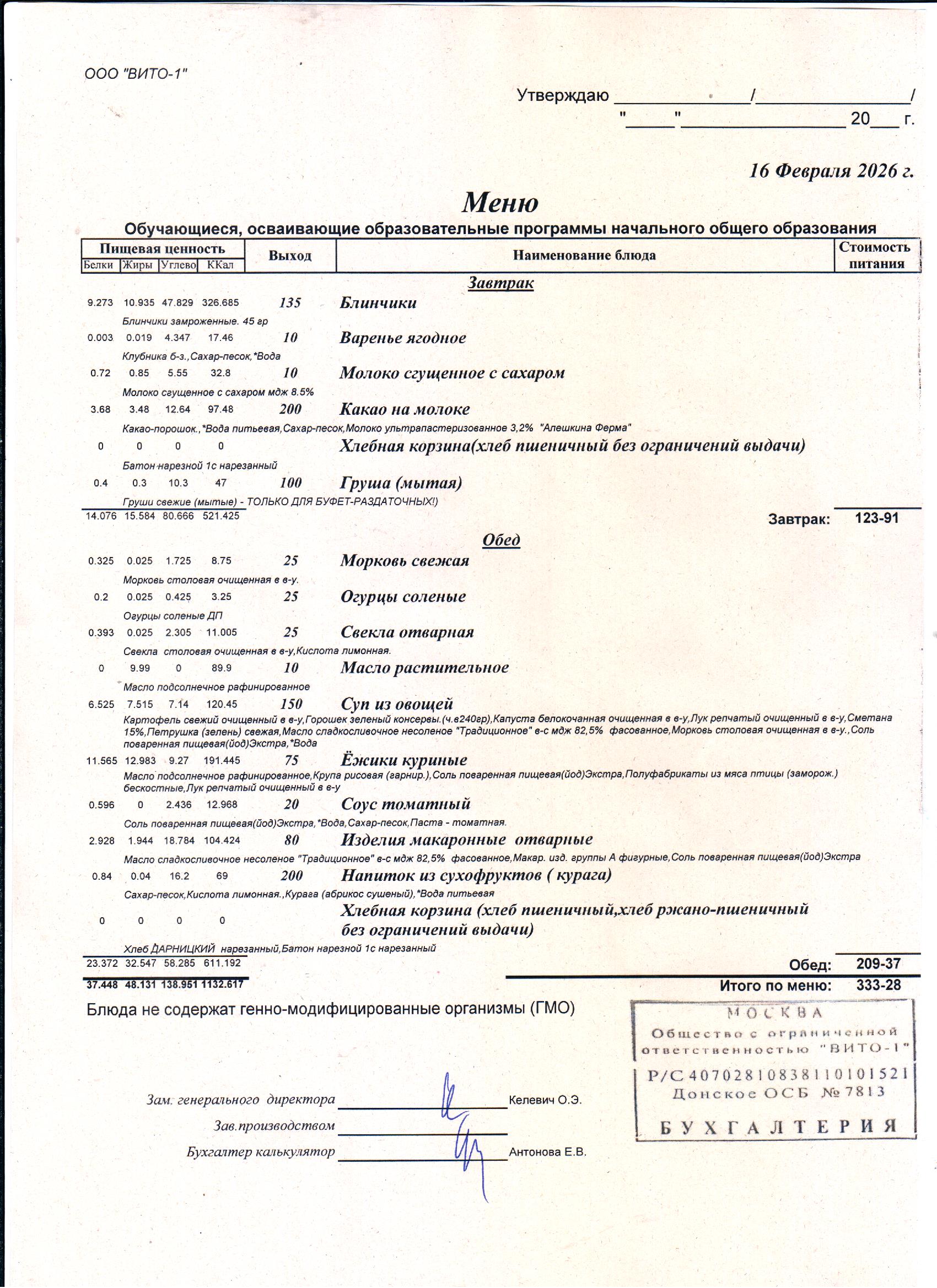ЕЖЕДНЕВНОЕ МЕНЮ СТОЛОВОЙ