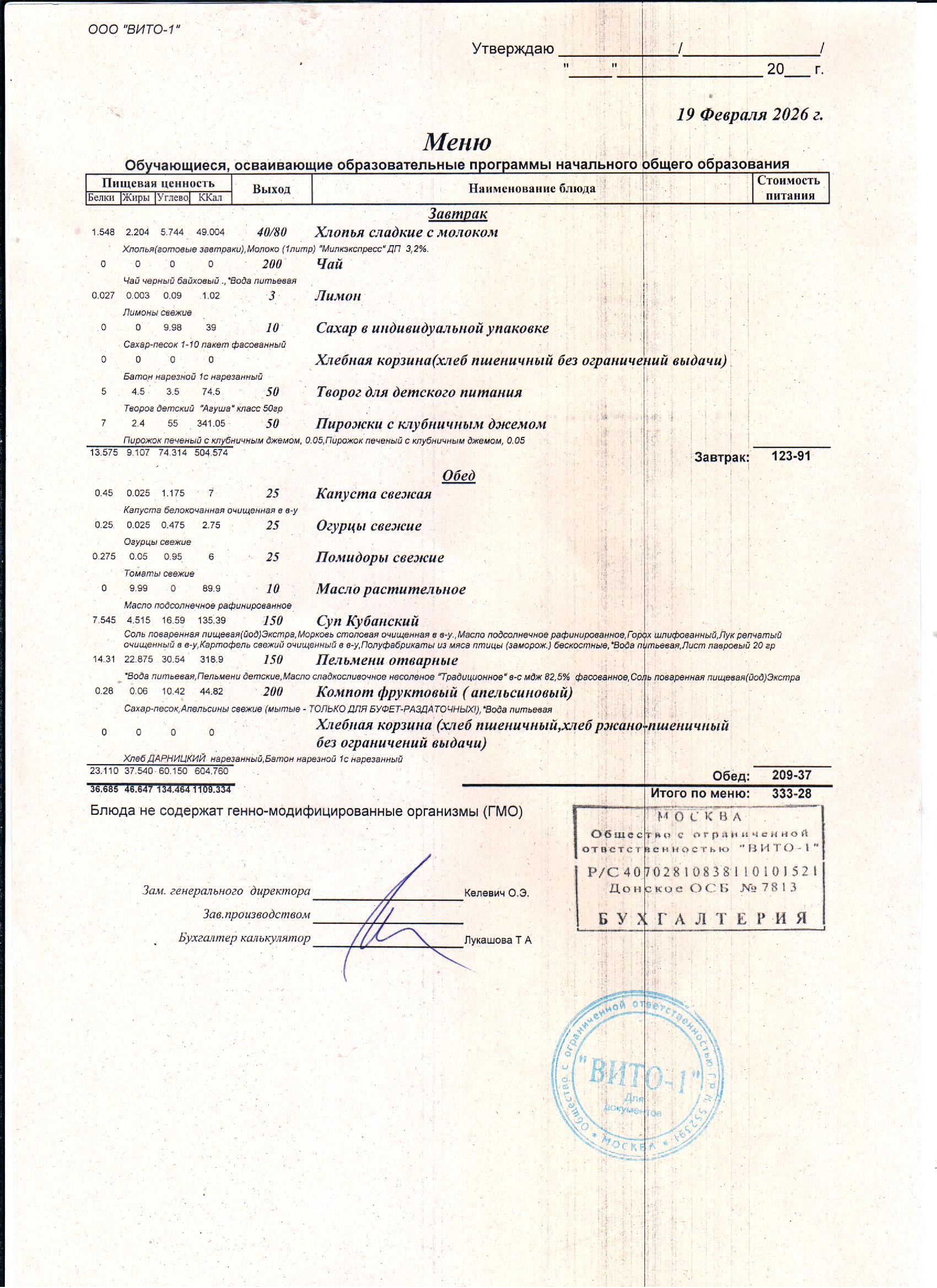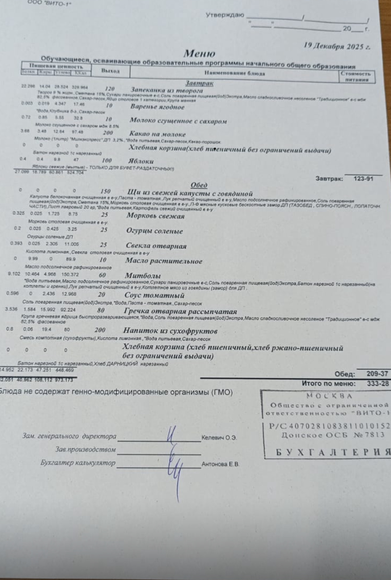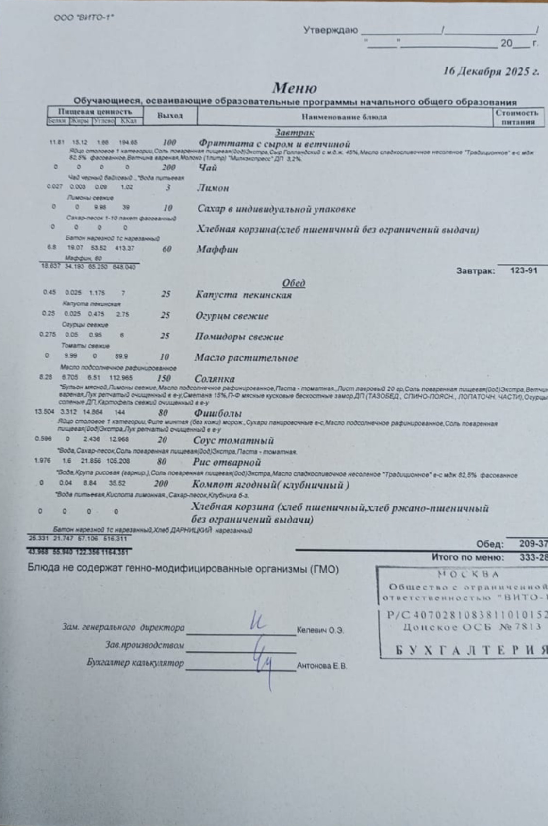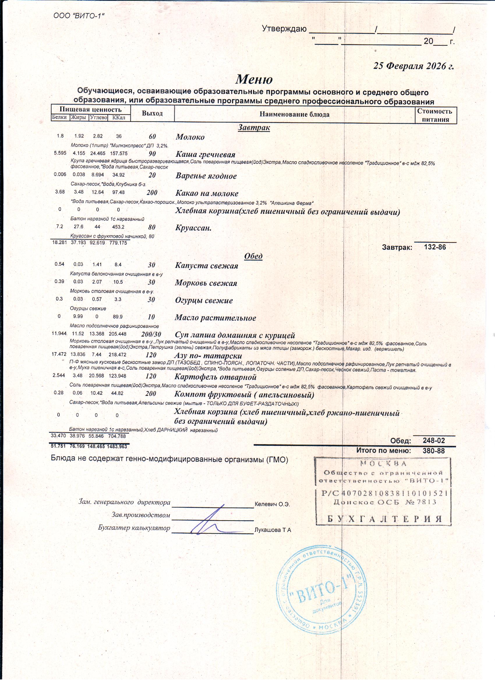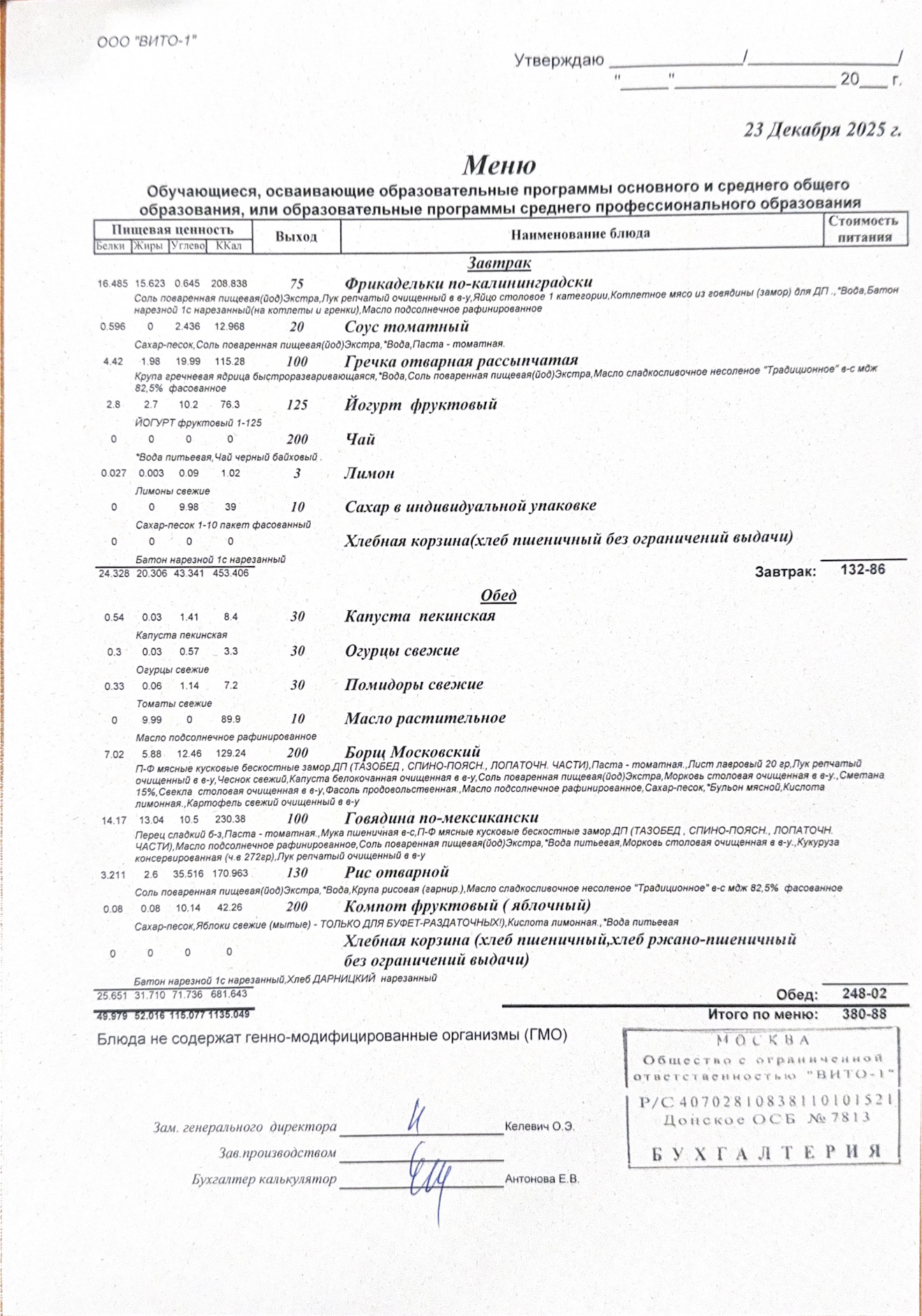 ЕЖЕДНЕВНОЕ МЕНЮ СТОЛОВОЙ