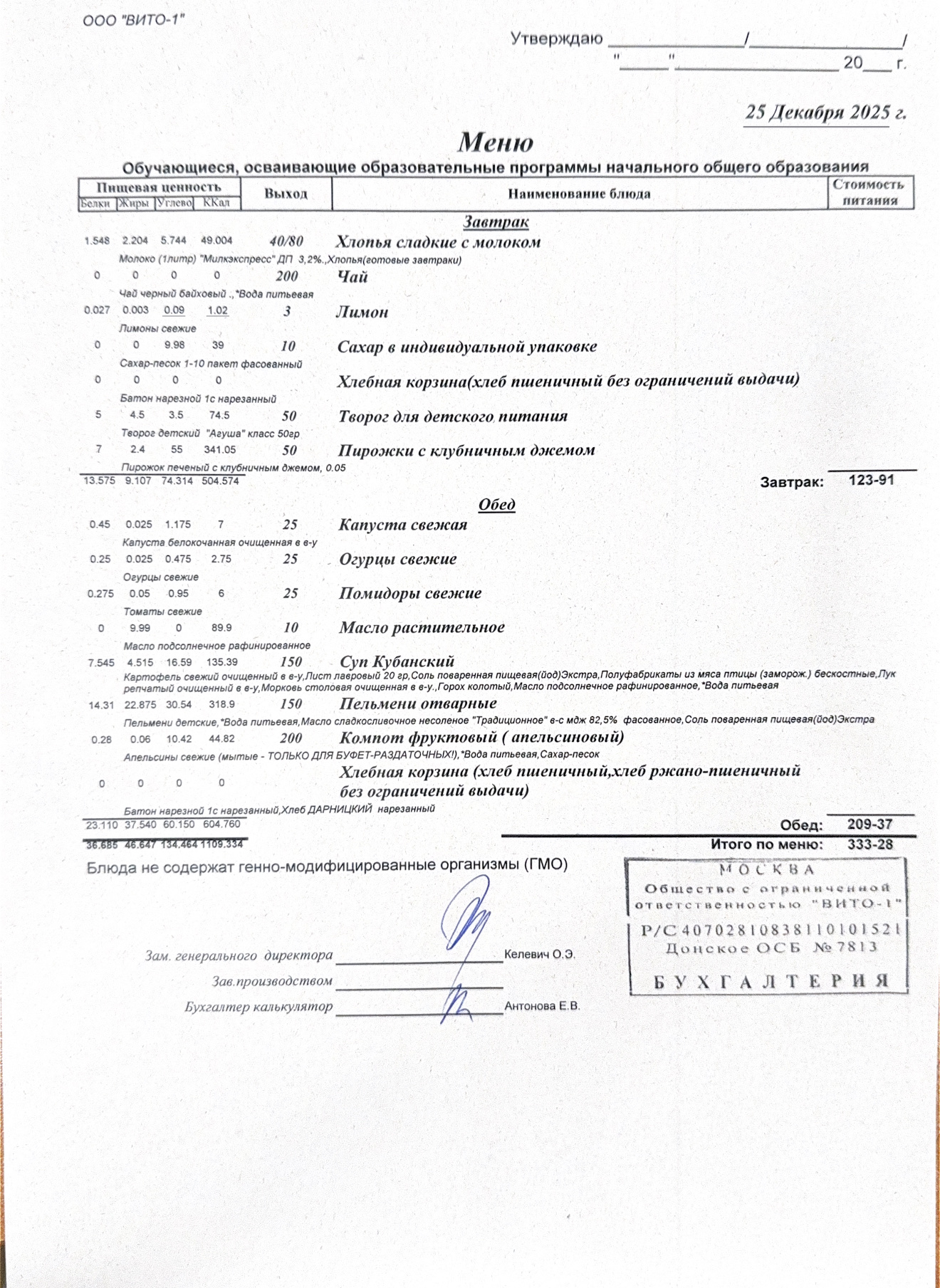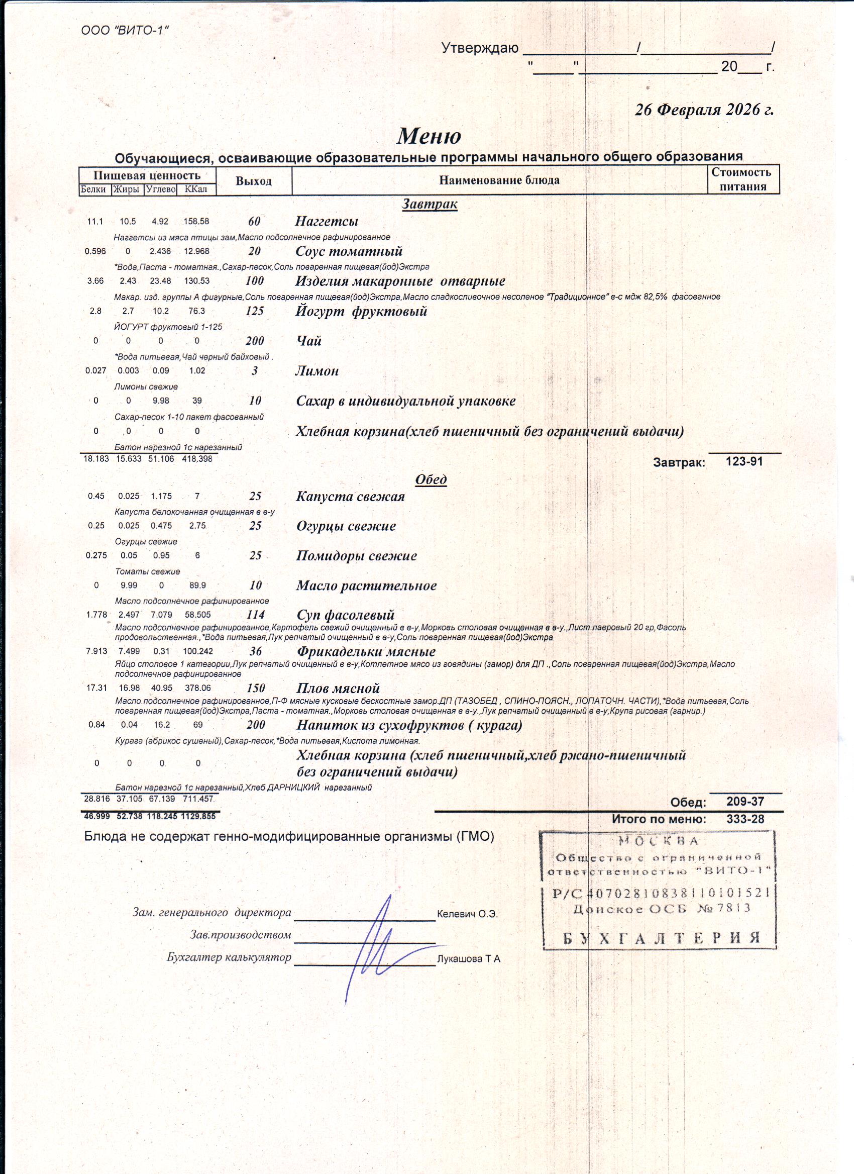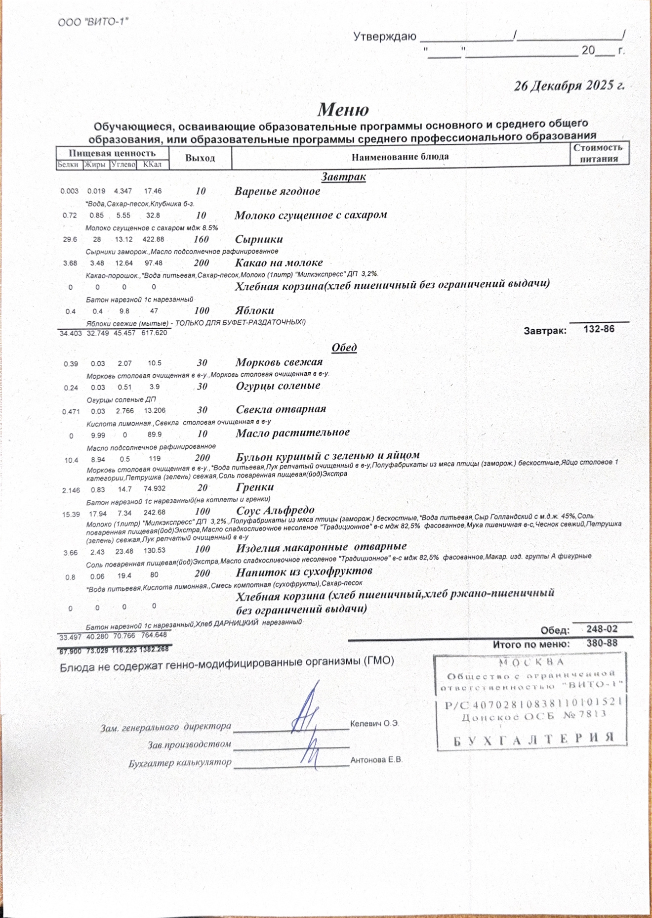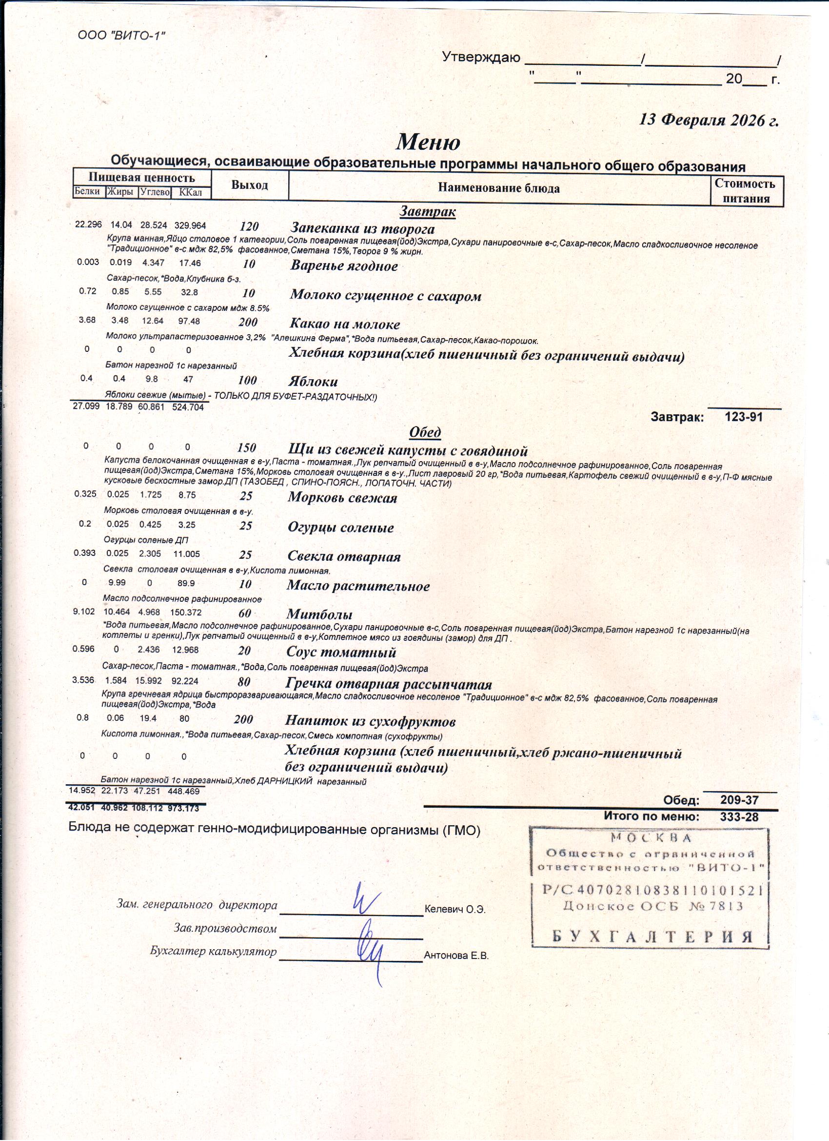 ЕЖЕДНЕВНОЕ МЕНЮ СТОЛОВОЙ