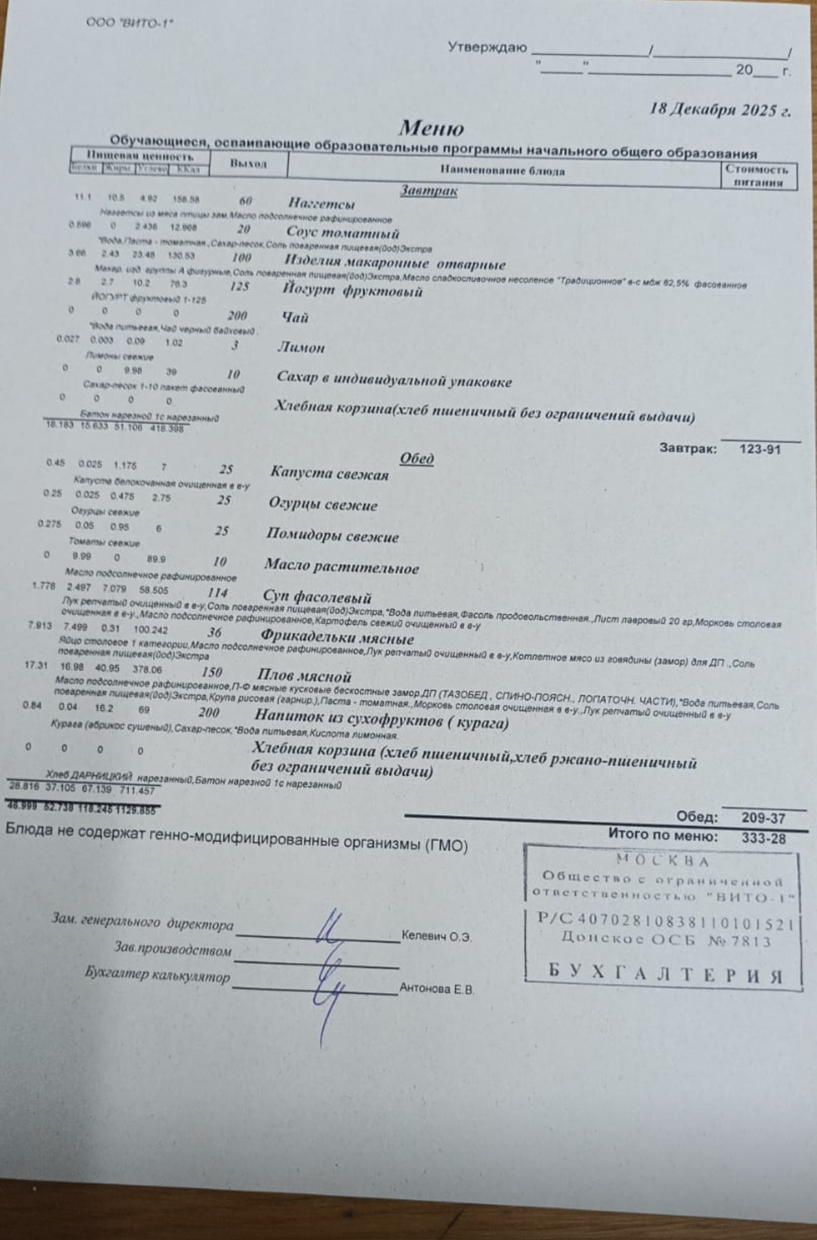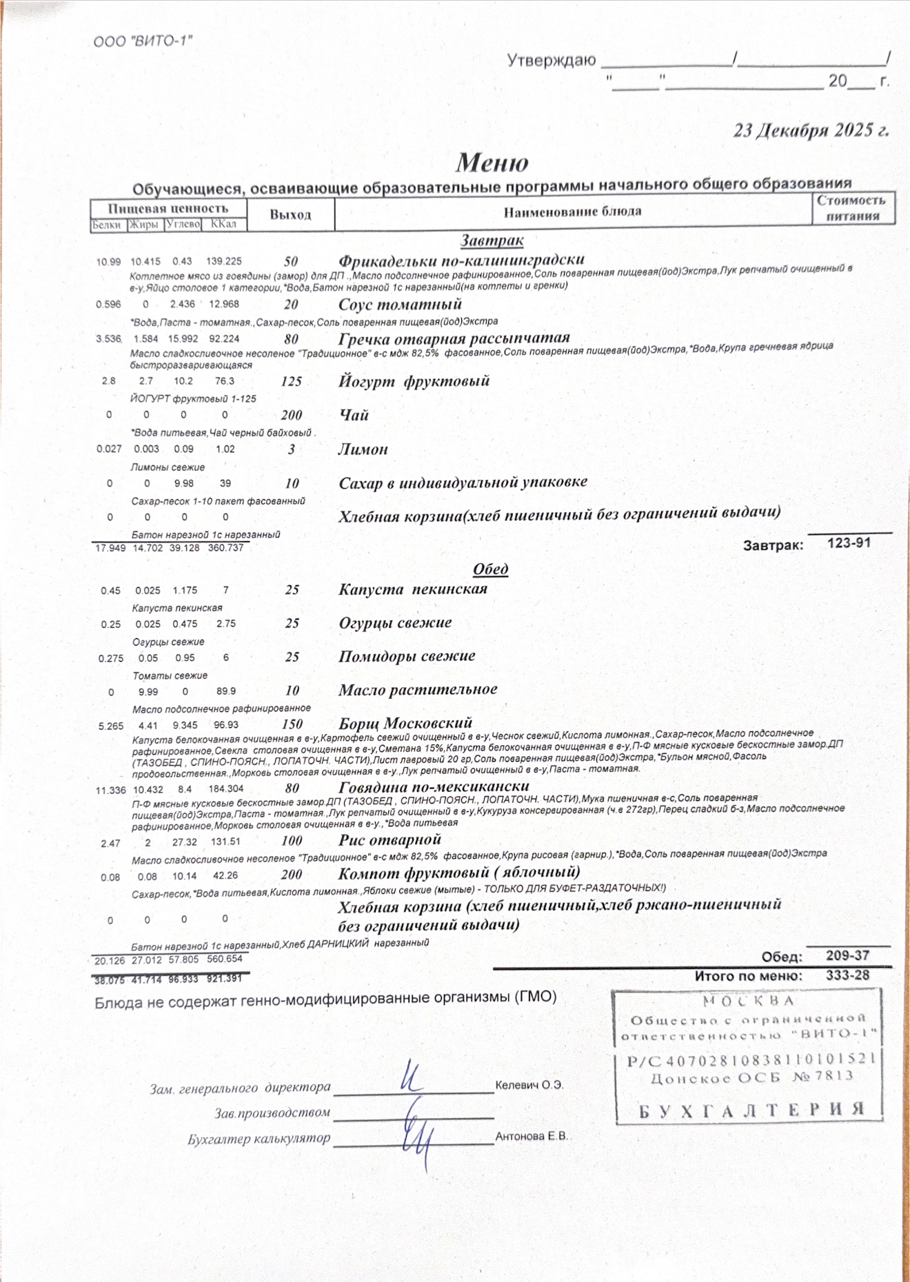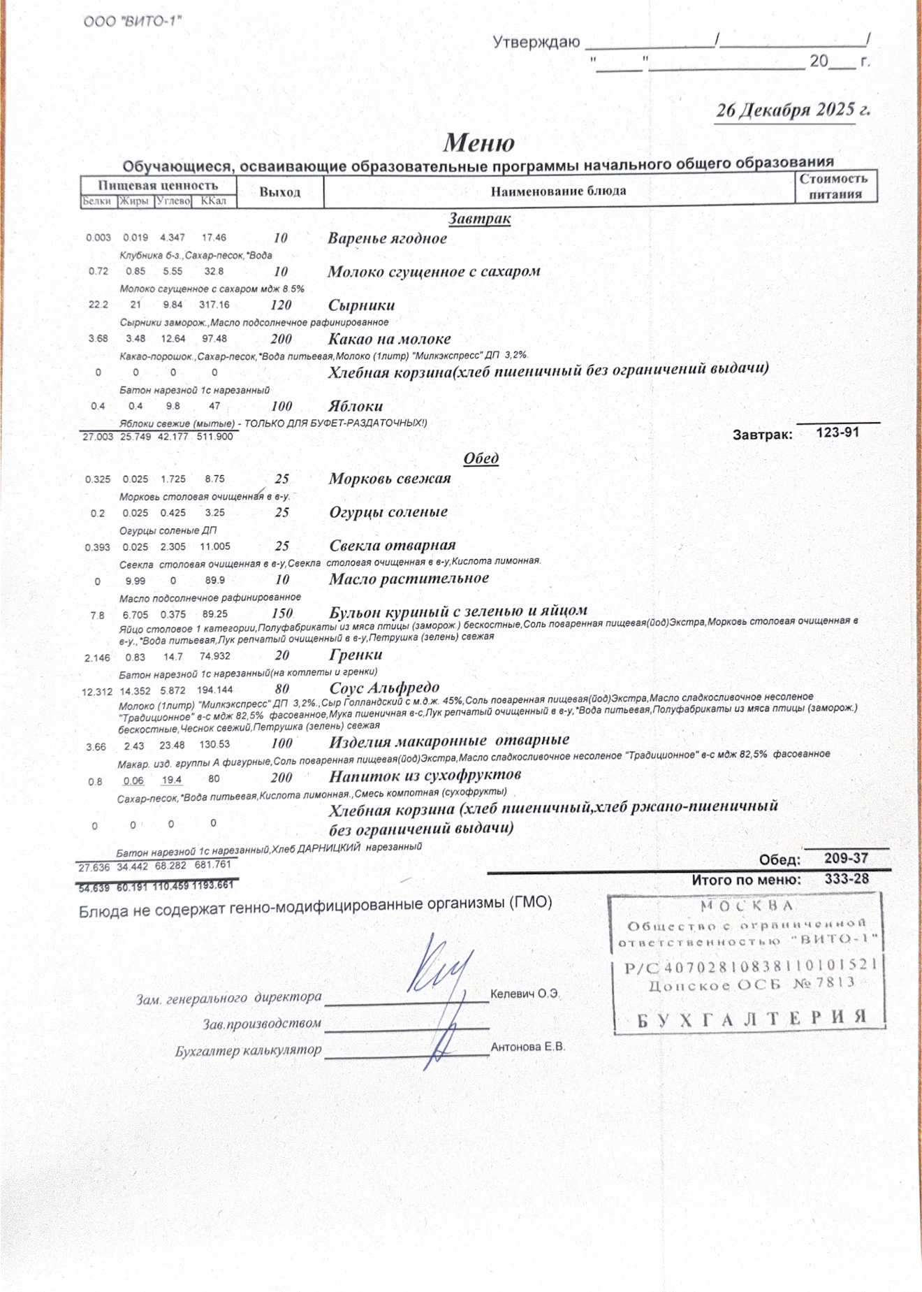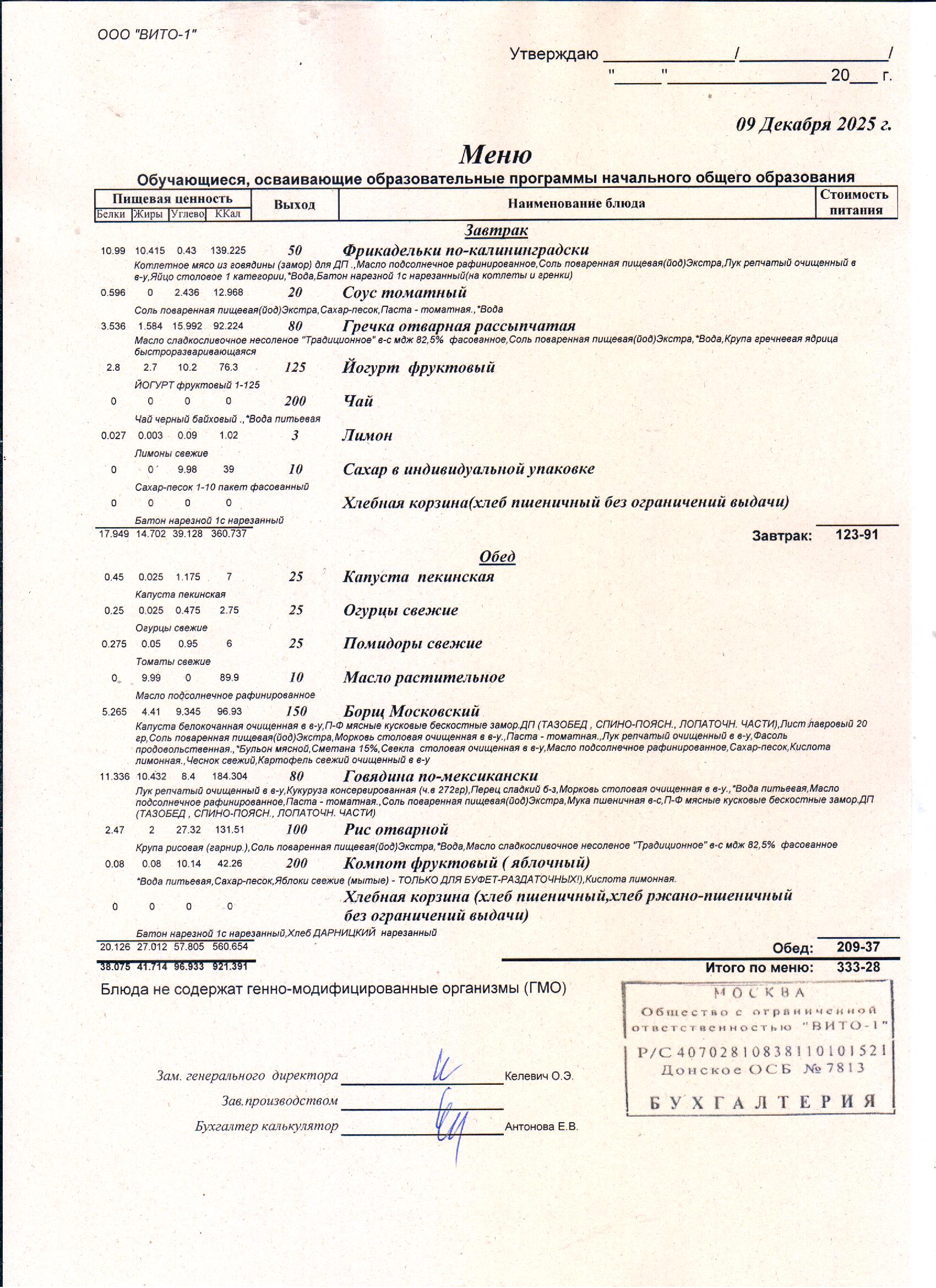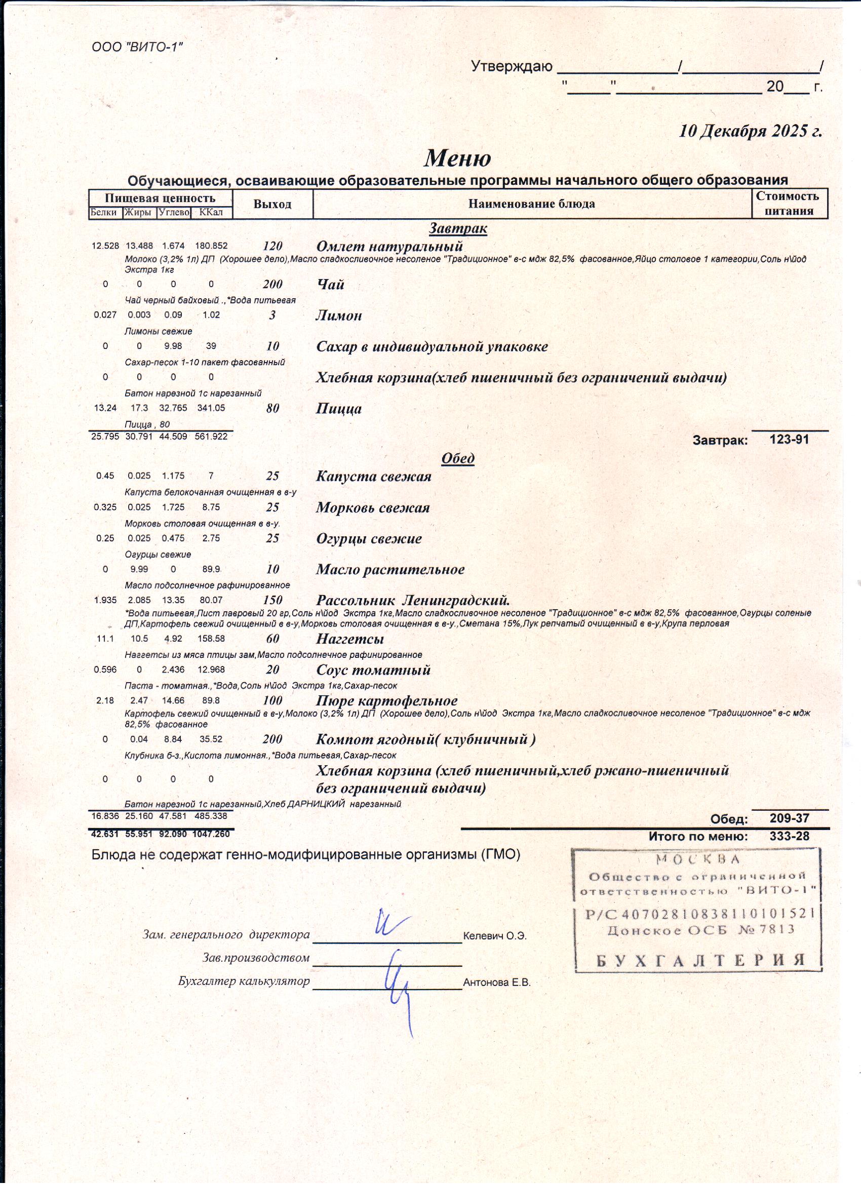ЕЖЕДНЕВНОЕ МЕНЮ СТОЛОВОЙ